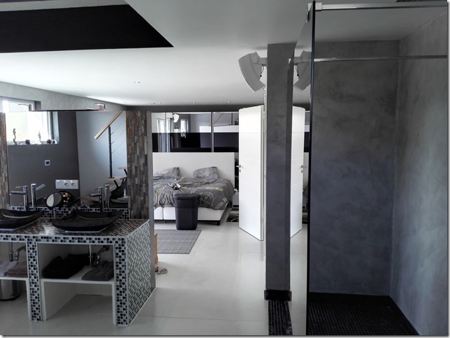 1ier étage : 2 chambres 1 (17 m2 et 23 m2), suite parentale luxueuse de 52 m2 avec douche italienne, double vasque en granit, jacuzzi multimédia, dressing avec accès directe par un escalier en bois au 2ème étage, une salle de bain avec douche italienne et double vasque et un WC séparé