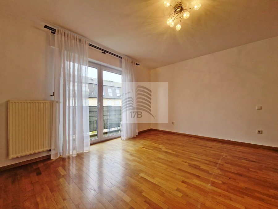 Eingangshalle, offene Küche mit Zugang zum Balkon, Badezimmer mit Waschmaschinen- und Trockneranschluss, großes Schlafzimmer mit Balkon.