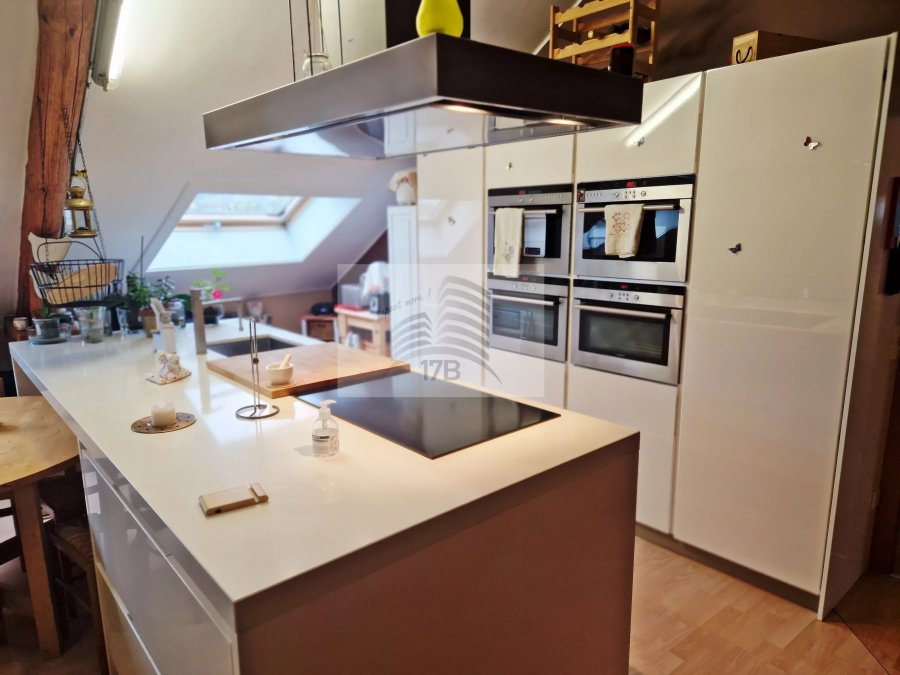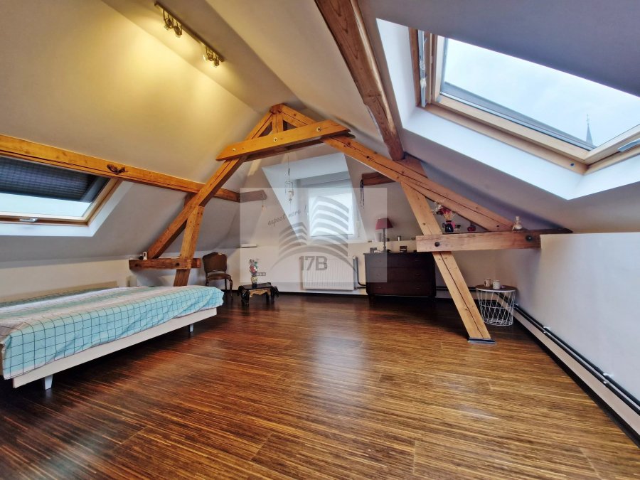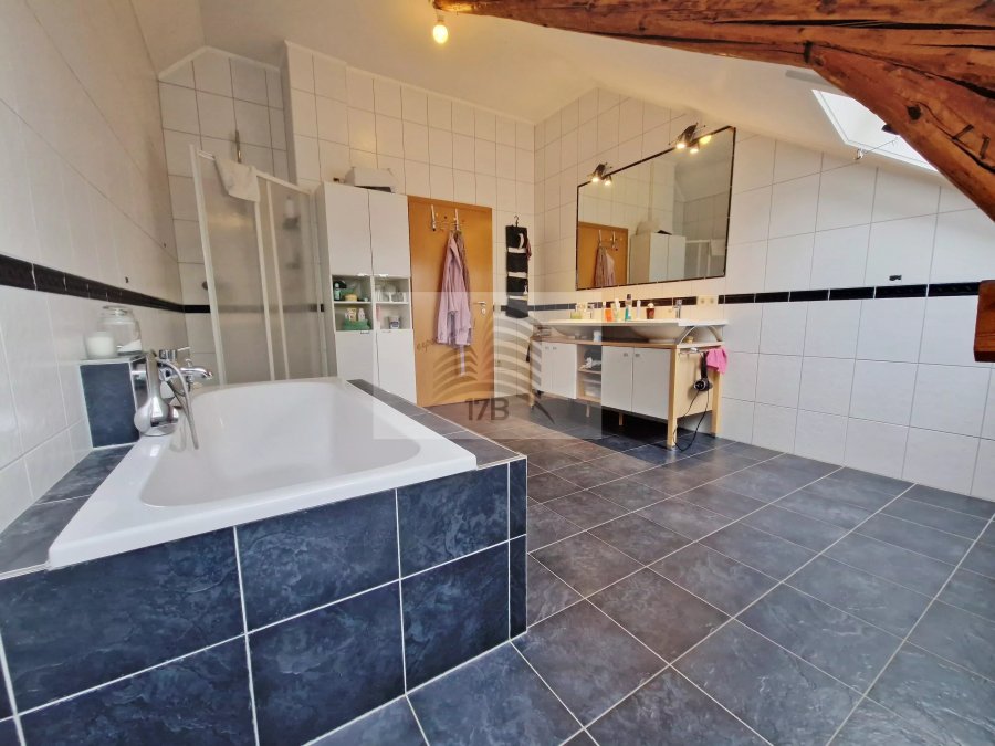 Vaste hall d’entrée de 18 m2, cuisine équipée ouverte sur séjour/salle à manger, salle de bain, WC d’Hôtes, deux grandes chambres à coucher, grenier/buanderie.