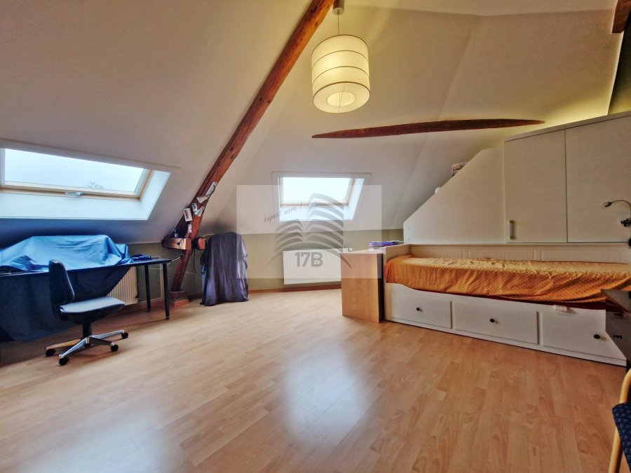 Large 18 m2 entrance hall, fitted kitchen opening onto living/dining room, bathroom, guest WC, two large bedrooms, attic/laundry room.
