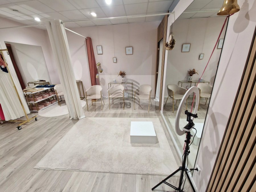 Local commercial avec une surface de 102,50 m2 agencé comme suit :Entrée, surface commerciale avec cloisons amovibles, kitchenette, bureau, WC
